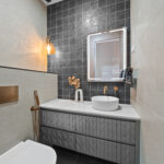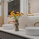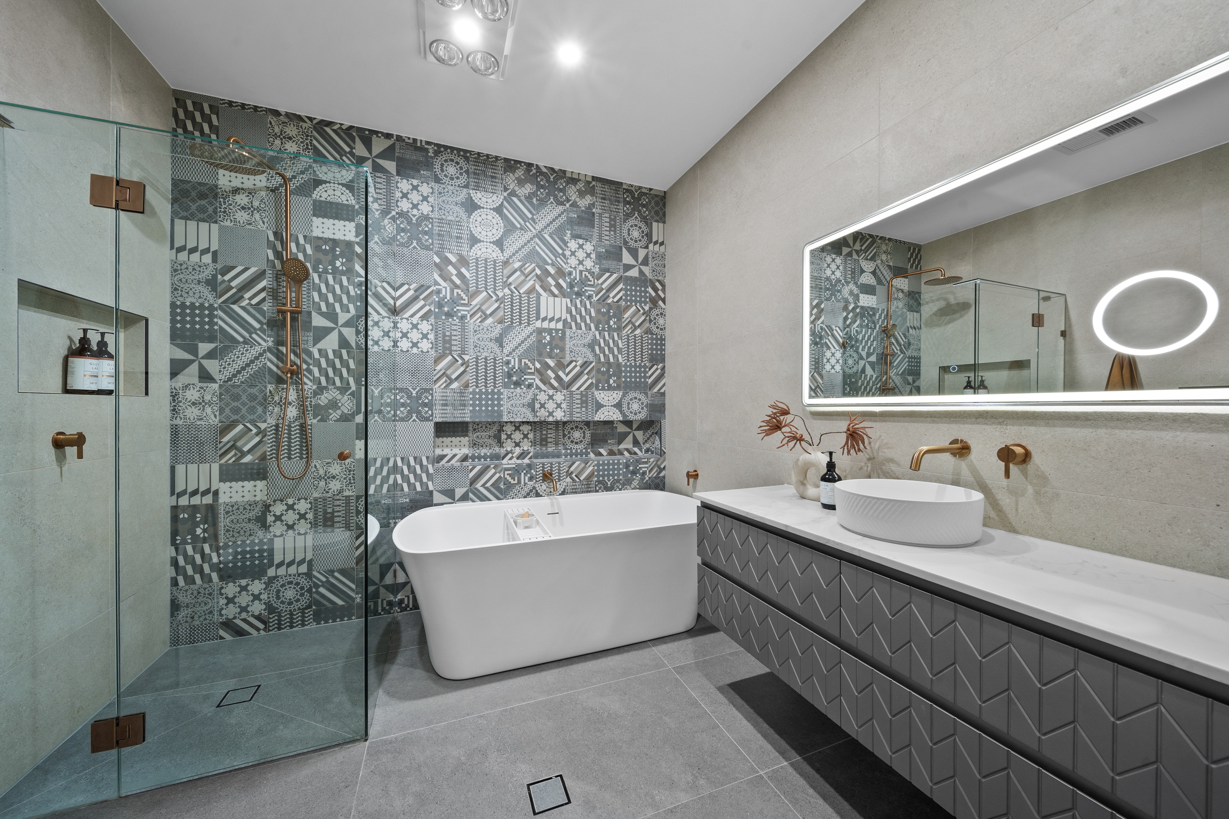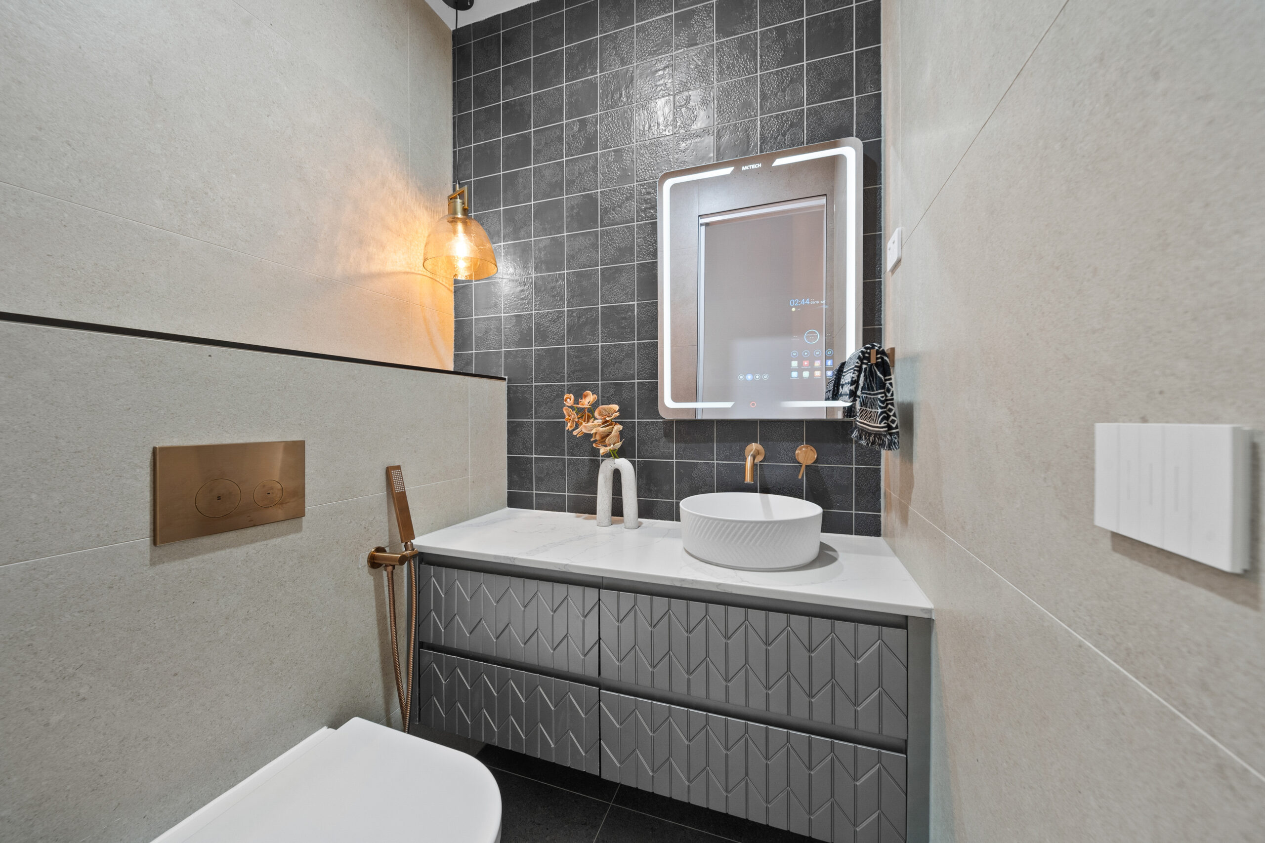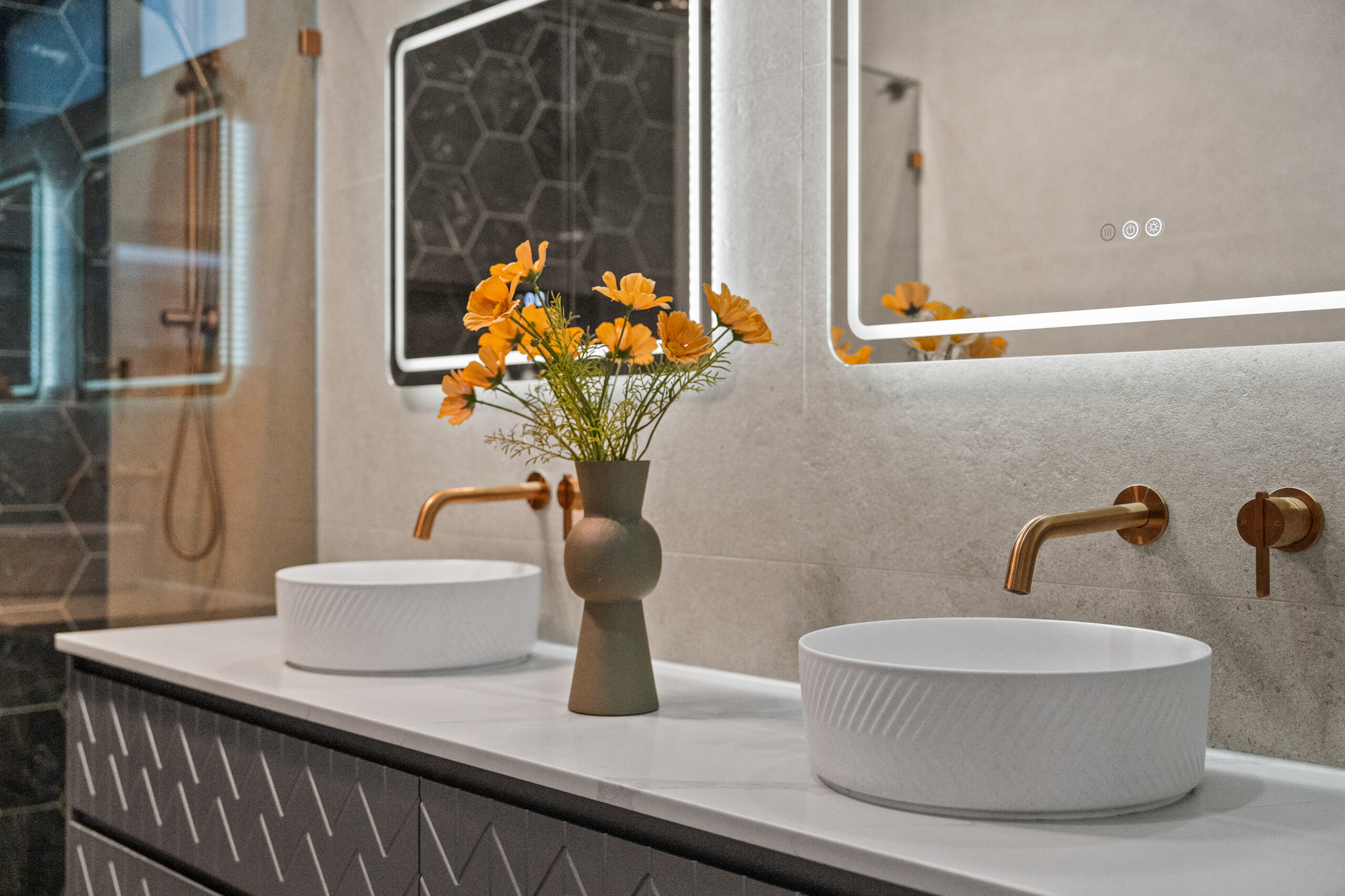 Designer brushed copper tapware throughout